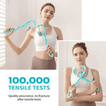 Massage your neck with a proper Vulcan neck pinch. This roller has a flexible plastic frame that allows you to effortlessly slip it around your neck for easy rolling.The rollers rotate to hit different angles and also help to anchor one side when needed.All in all this is a great solo massage tool.