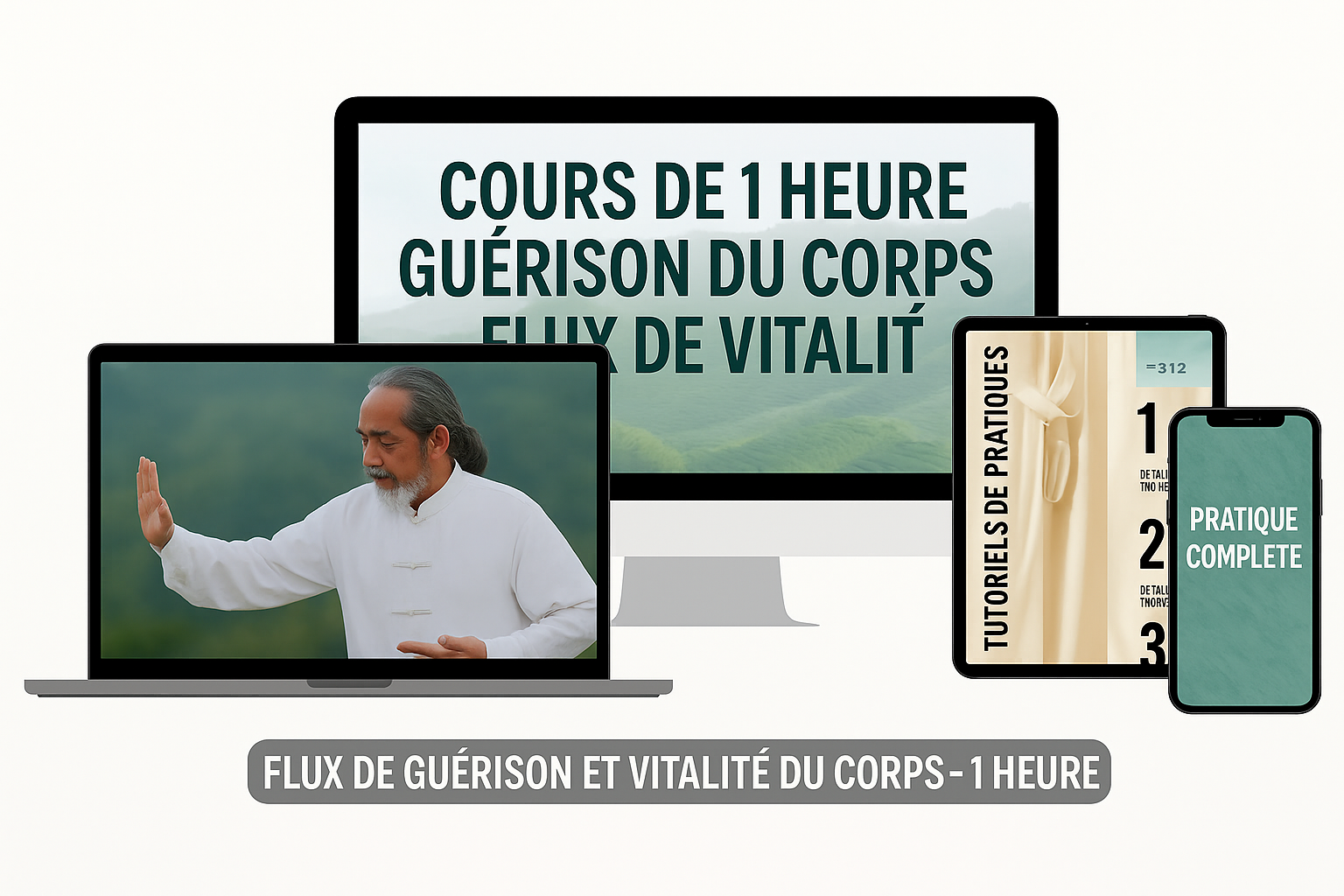 Le cours « Flux de guérison et vitalité du corps – 1 heure » est basé sur les principes de la Médecine Traditionnelle Chinoise (MTC). Il met l’accent sur l’équilibre global du corps, la circulation de l’énergie (Qi), la nutrition des organes et la prévention des maladies.
