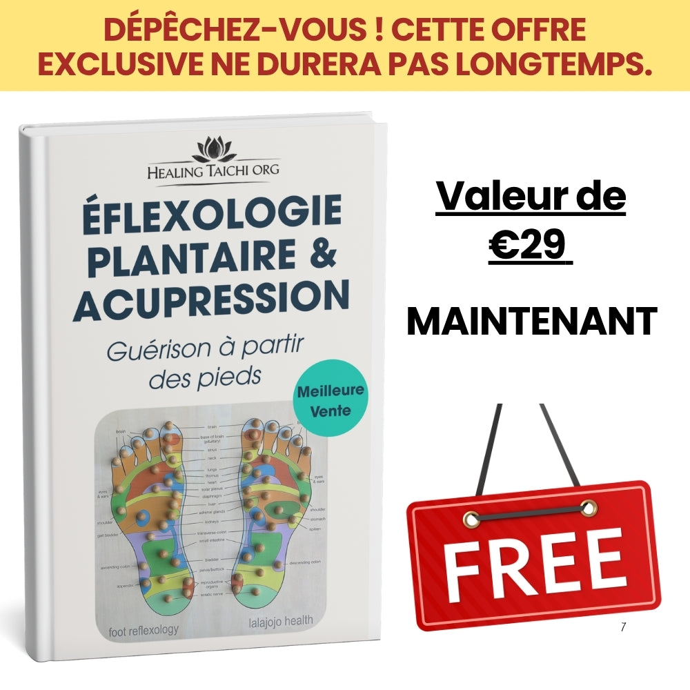 “En commandant aujourd’hui, vous recevrez gratuitement notre guide complet de Réflexologie Plantaire & Acupression (valeur de 29 $) — le compagnon idéal pour soulager plus de 50 maux courants.”