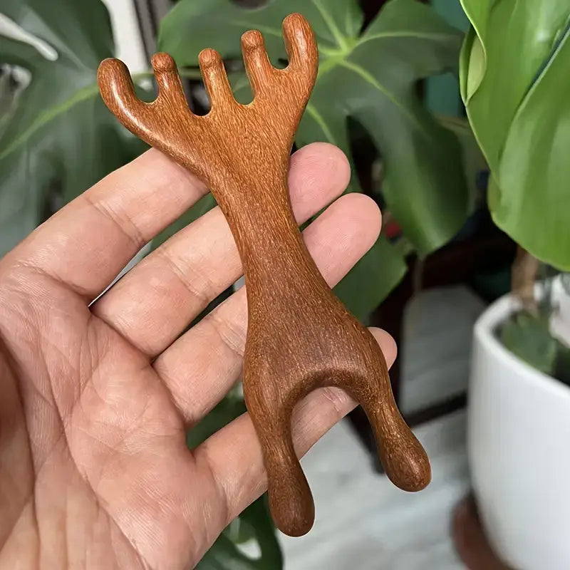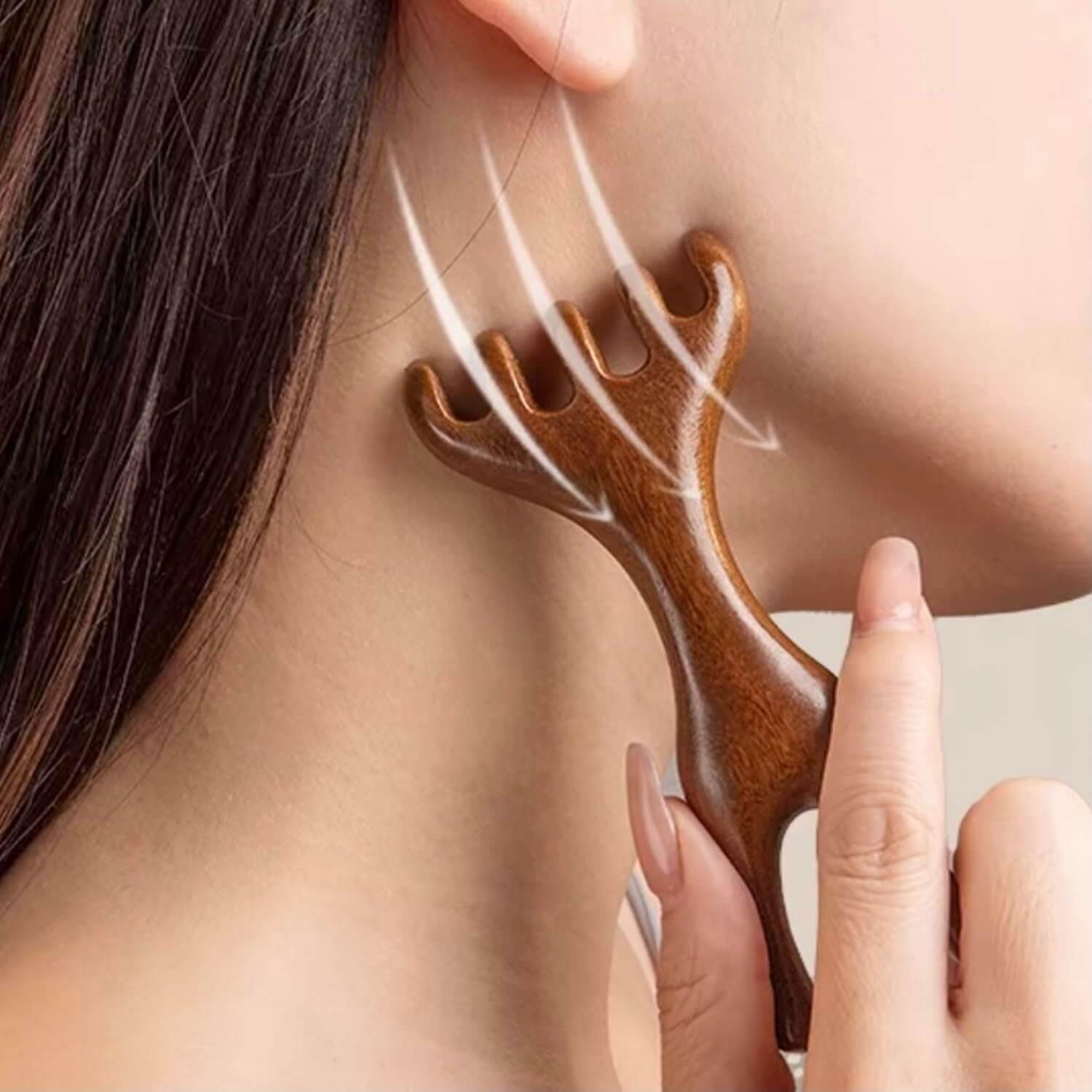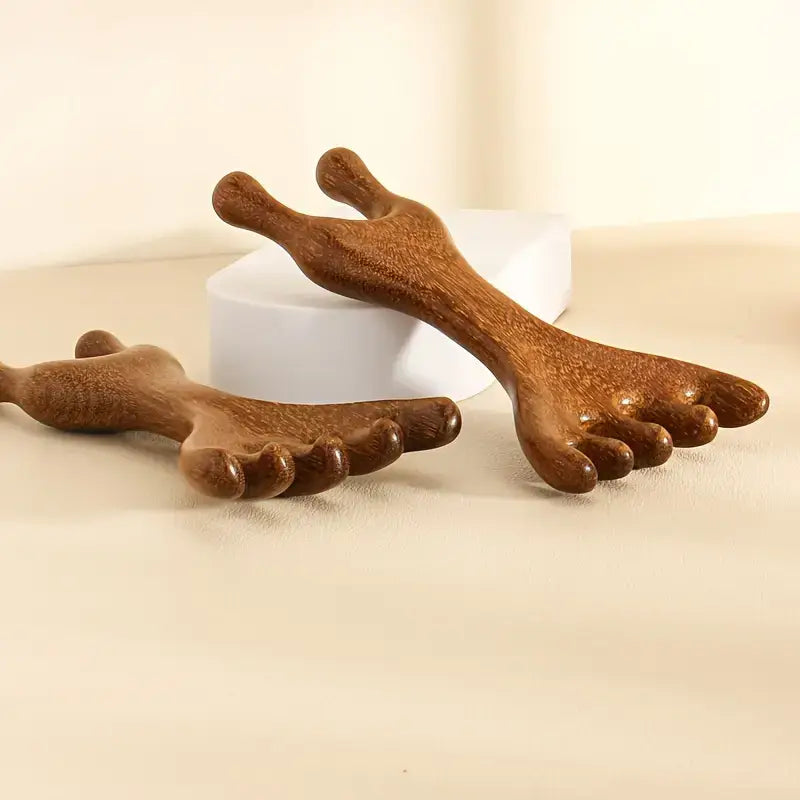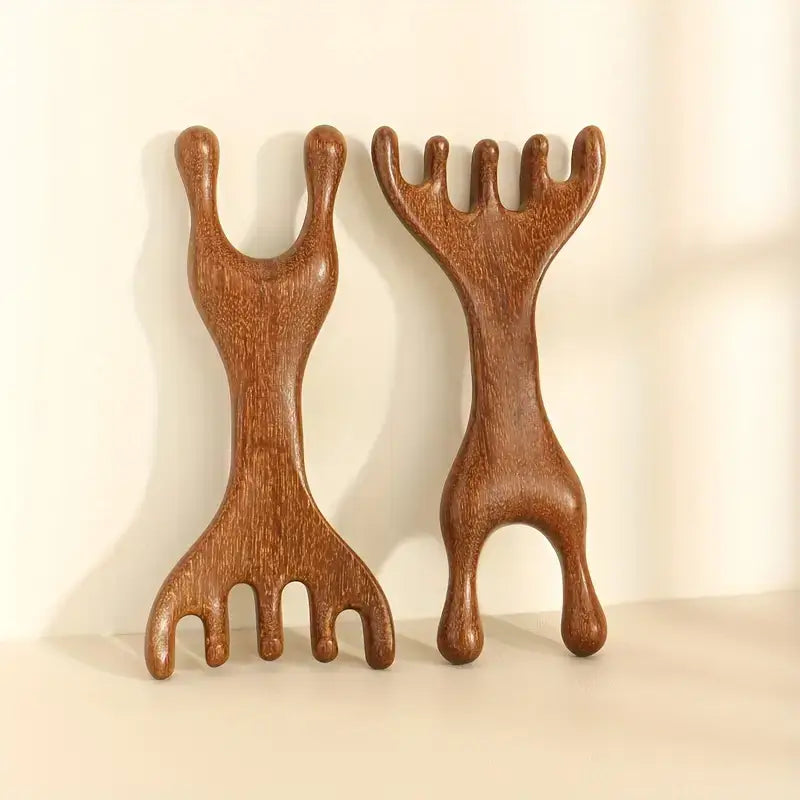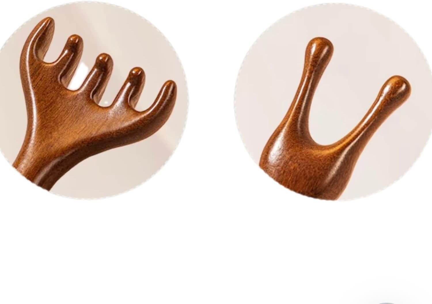 A revolutionary dual-ended massage comb designed to enhance scalp health, stimulate meridians, and provide deep relaxation. Crafted from natural sandalwood, this comb features a unique five-claw design on one end for deep scalp massage, while the opposite two-point tip is perfect for precision pressure therapy on meridian points and facial contours.