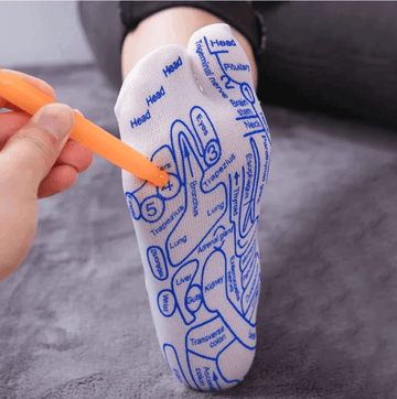 - Each sock features a detailed diagram of reflex points. These are strategically placed based on reflexology principles to target areas of the body.