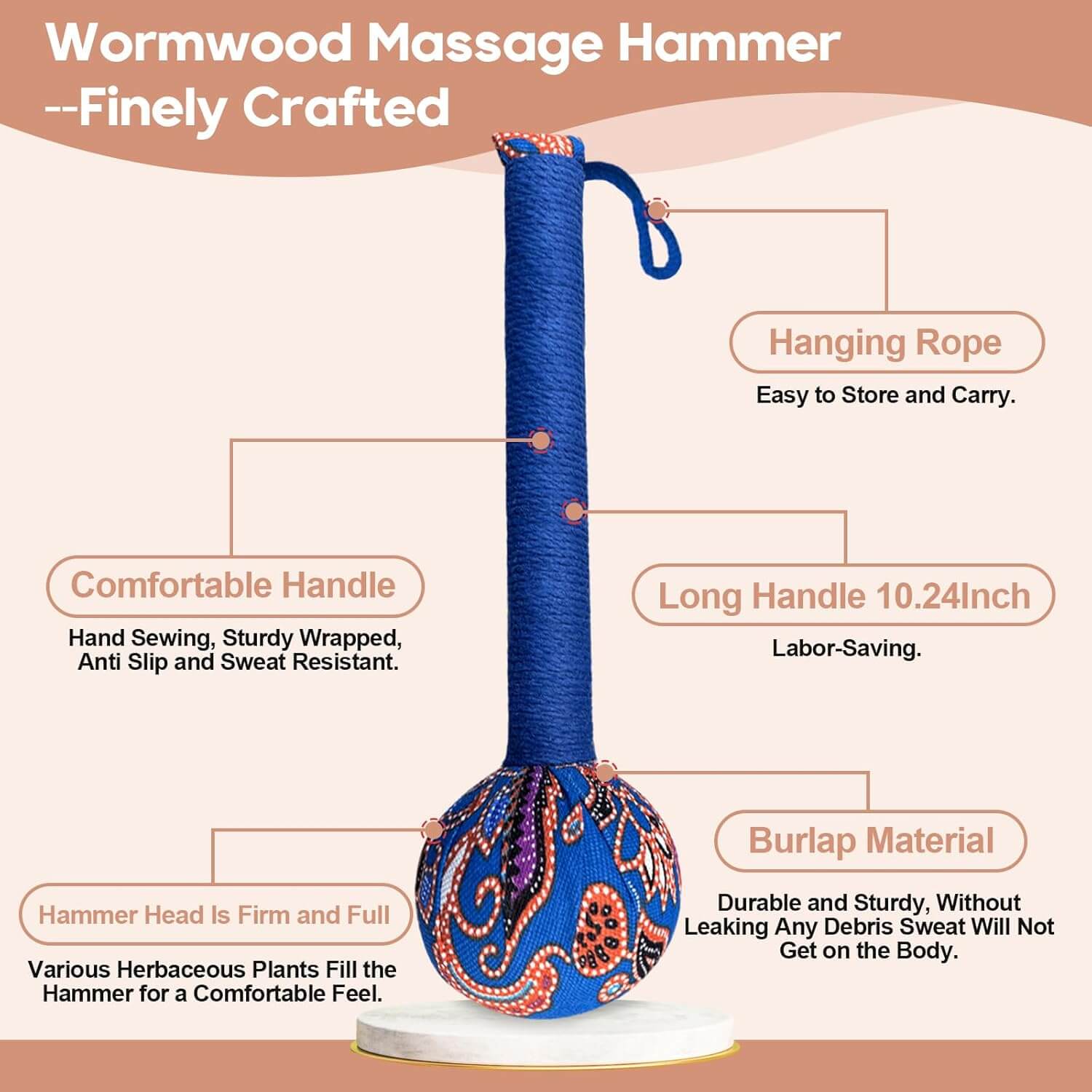 Designed for those who value natural healing over harsh treatments, the Wormwood Herbal Massage Hammer offers a simple, calming way to reconnect with your body.